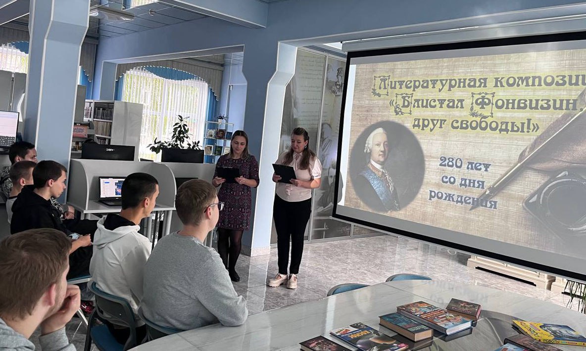 Студенты Орловского техникума агробизнеса и сервиса побывали в библиотеке имени И.А. Новикова на литературной композиции, посвященной 280-летию со дня рождения великого русского писателя Дениса Ивановича Фонвизина