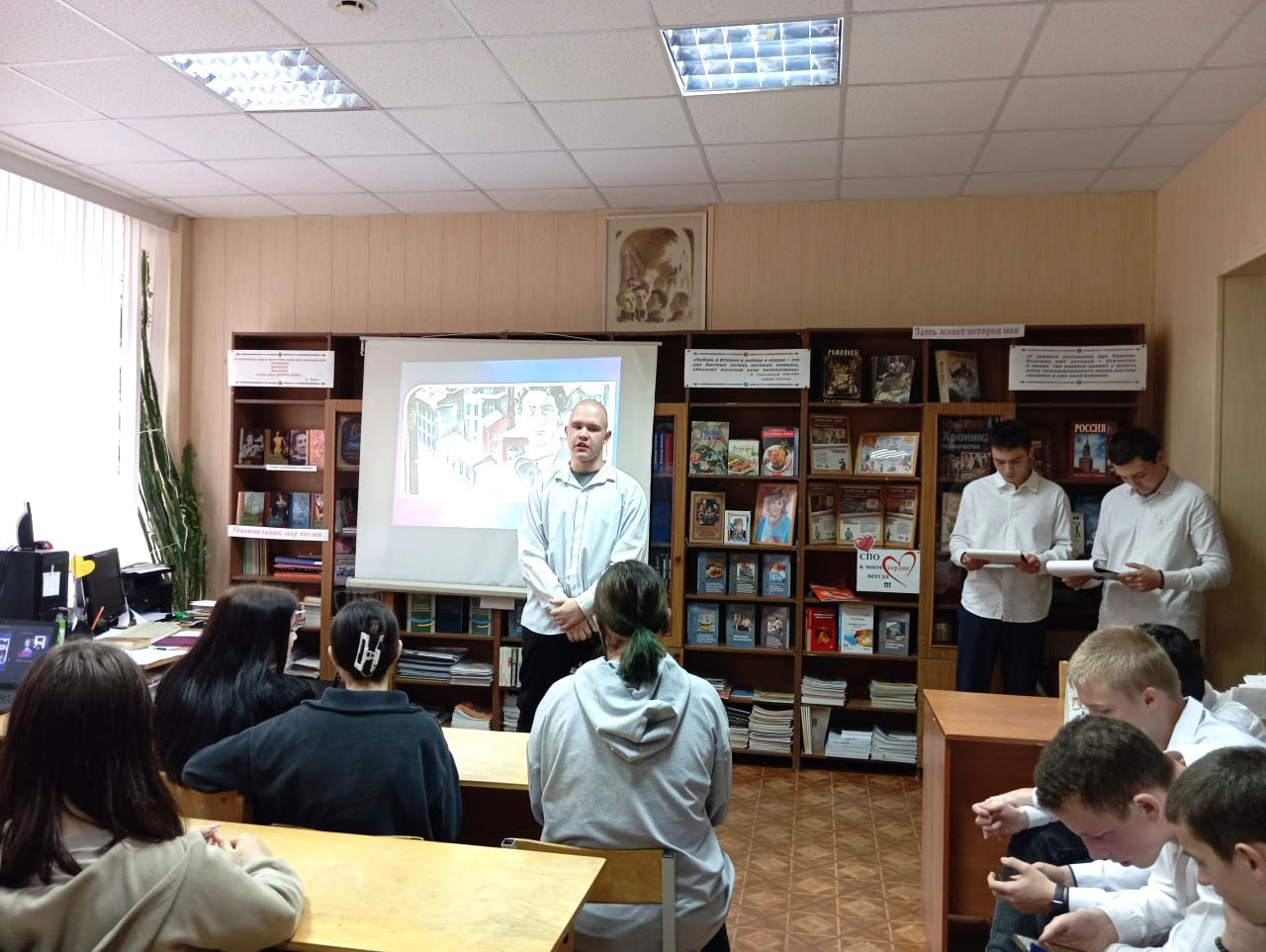 15 октября в библиотеке Орловского техникума агробизнеса и сервиса преподаватель литературы Наталия Александровна Кудинова вместе со студентами группы «3-1» устроили творческую встречу, посвящённую знаменательной дате — 145-летнему юбилею великого русского поэта Александра Блока.