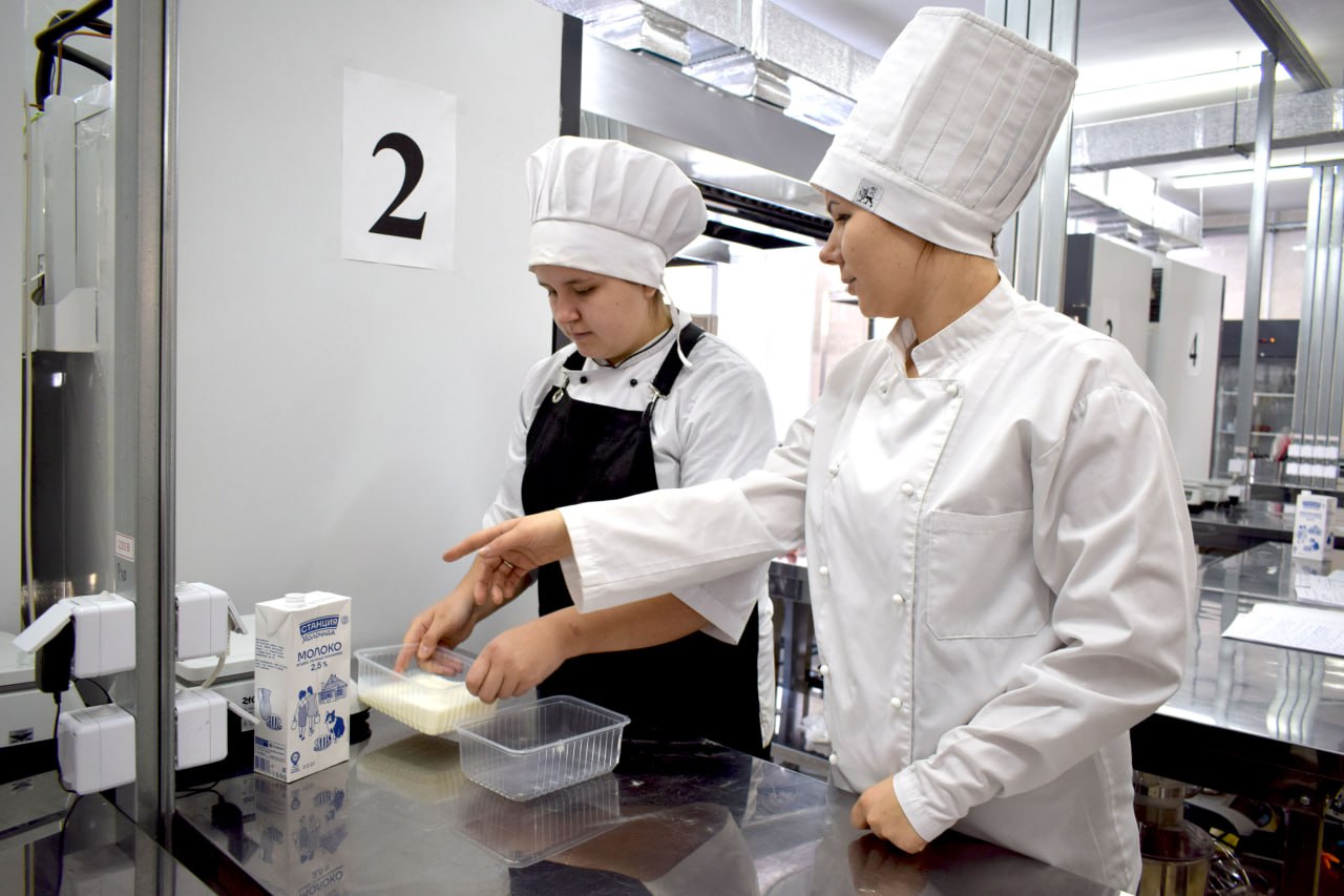 📌 Софья Кучерова (компетенция «Поварское дело») под руководством преподавателя Надежды Петровны Манкулиевой.