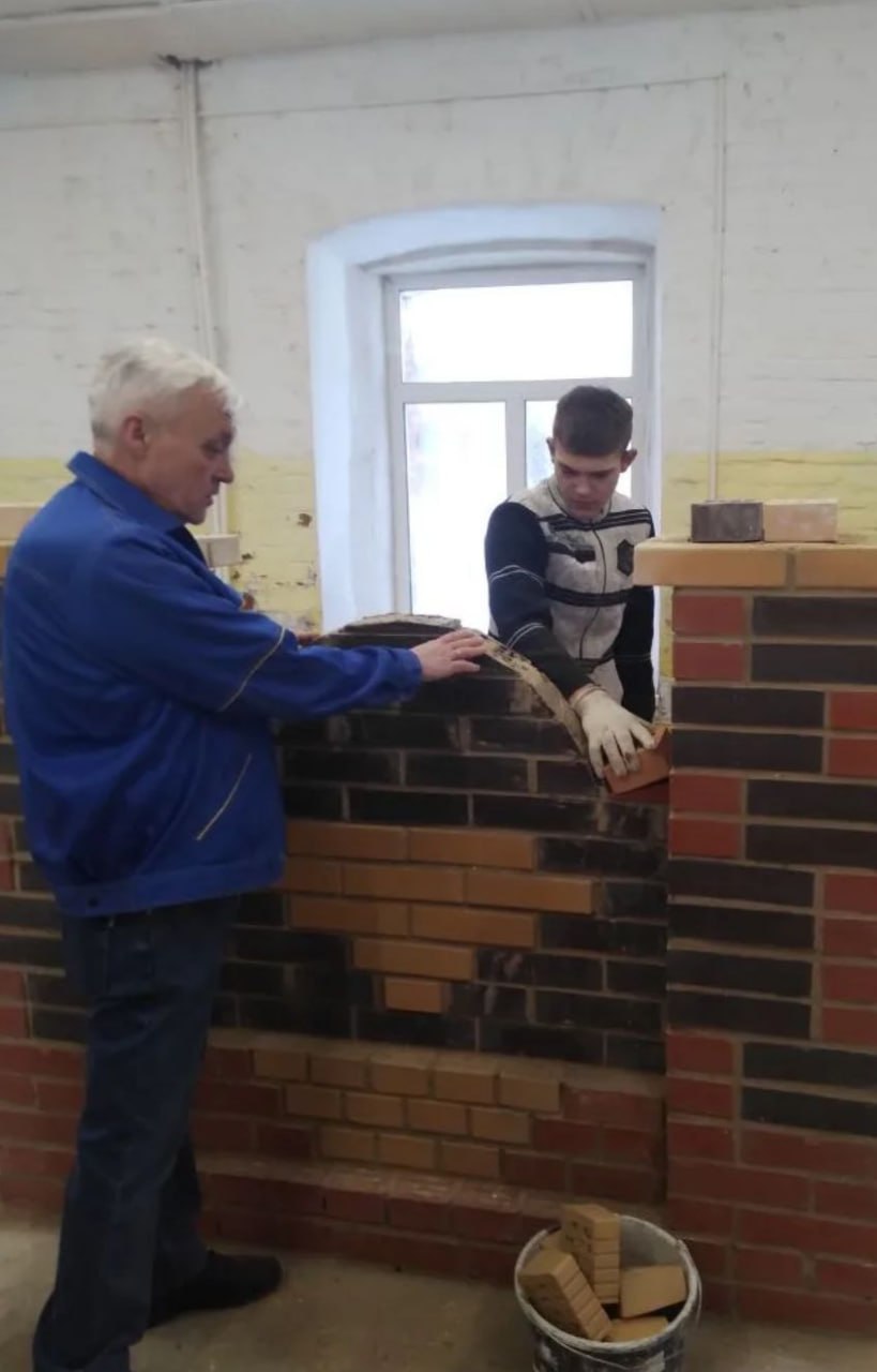 📌 Илья Василинич и Алексей Гераськин (команда из филиала №1) участвуют в категории «Кирпичная кладка». Их кураторы —педагоги Николай Иванович Кошля и Александр Владимирович Клушин.