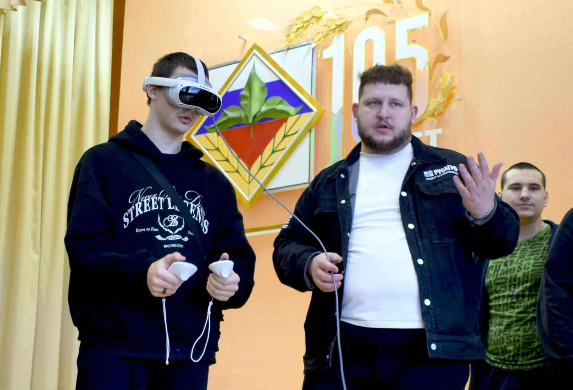 Менеджеры по работе с образовательными организациями Эмилия Шуткова и Дмитрий Дрёмин рассказали о своей компании, предложили студентам поучаствовать в увлекательной викторине, научили ребят пользоваться виар-очками👀 для виртуального обслуживания свеклоуборочного комбайна.