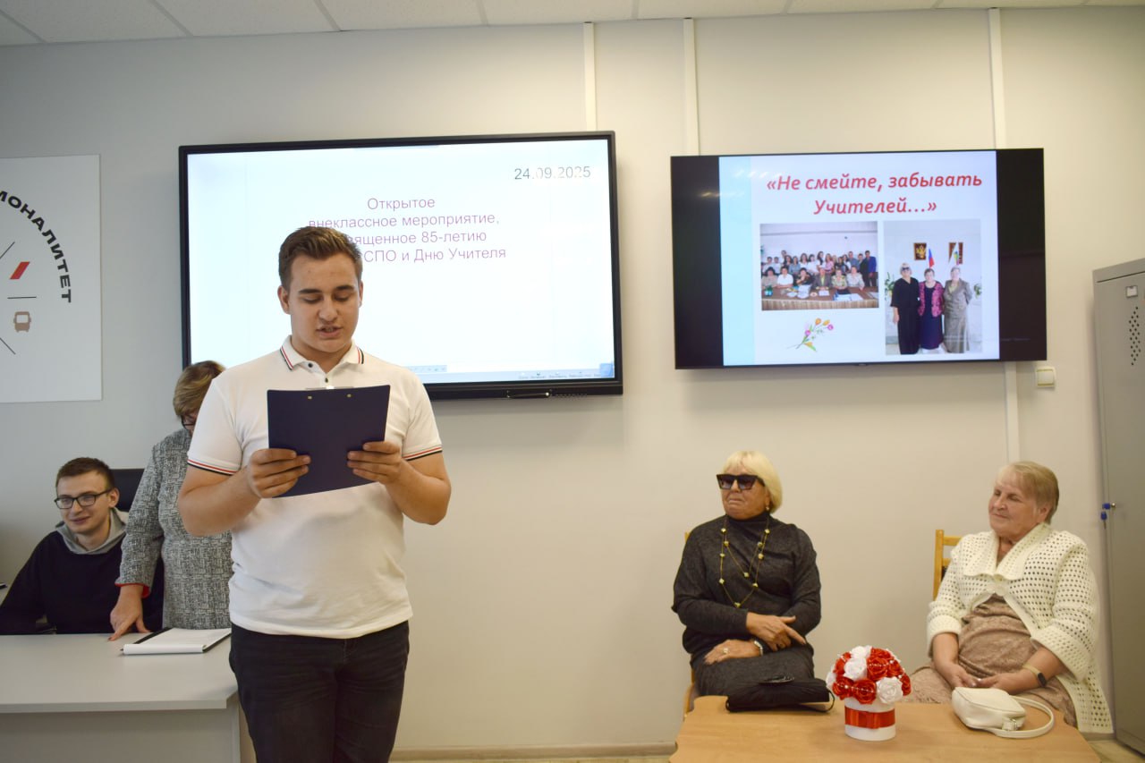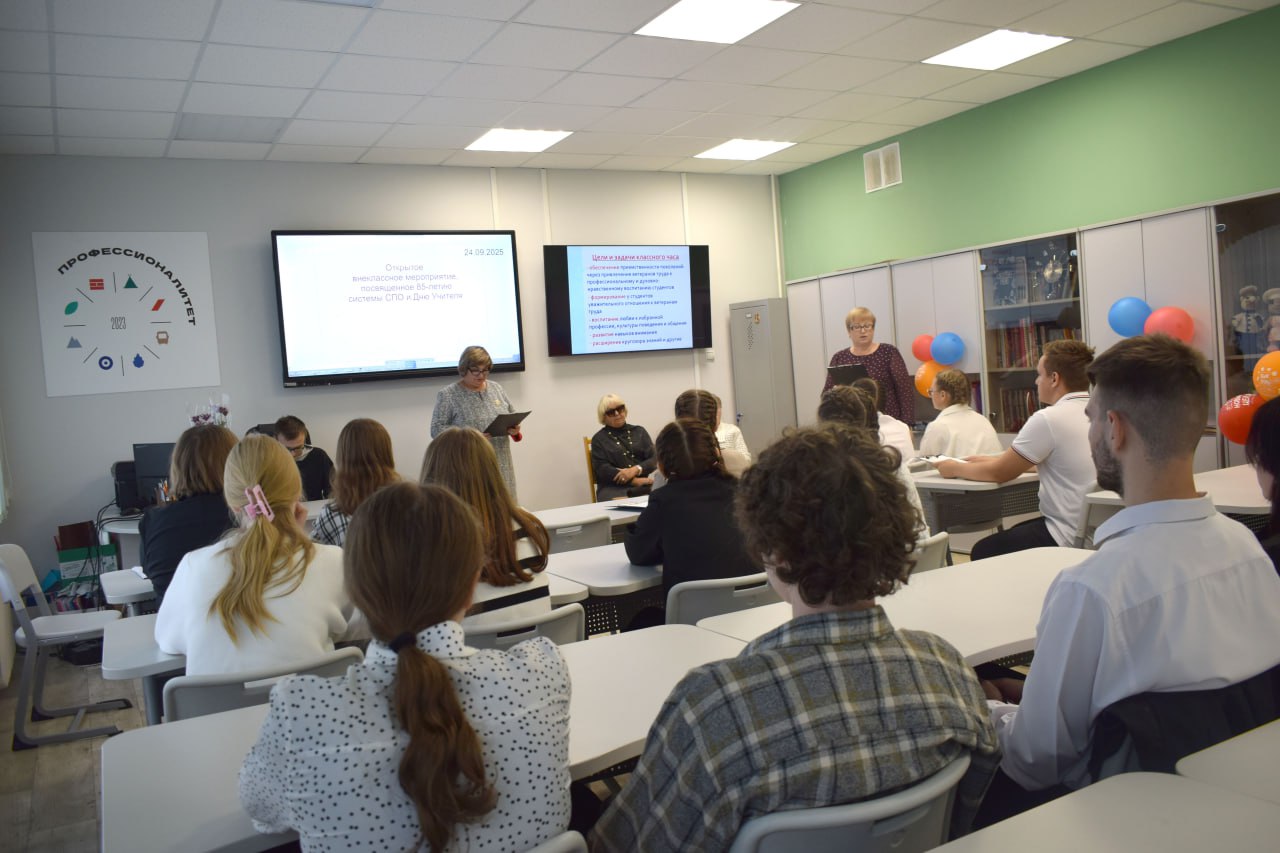 Преподаватели направления кулинарно-технологических дисциплин Ирина Александровна Амелина и Наталья Васильевна Кидинкина вместе со студентами организовали необычное мероприятие в честь сразу двух важных дат: 85-летия системы среднего профессионального образования и Дня учителя. Они устроили тёплую встречу под названием «Ветеран педагогического труда СПО».