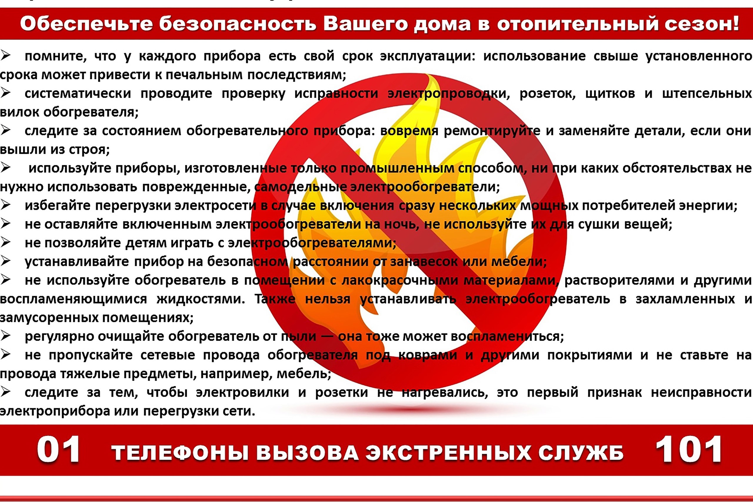 — содержите отопительные электрические приборы, плиты в исправном состоянии подальше от штор и мебели на несгораемых подставках;