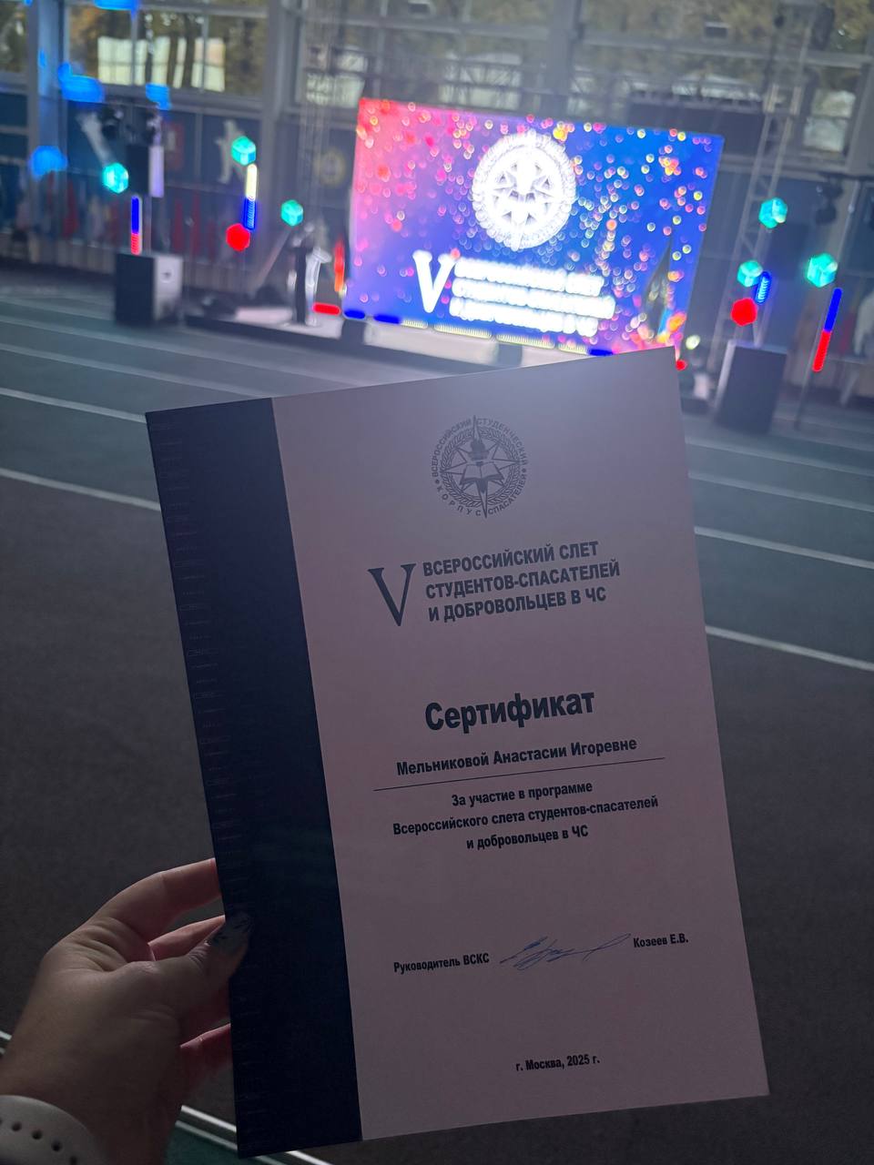Студентка ОТАиС Анастасия Мельникова отличилась на Всероссийском слёте спасателей и добровольцев