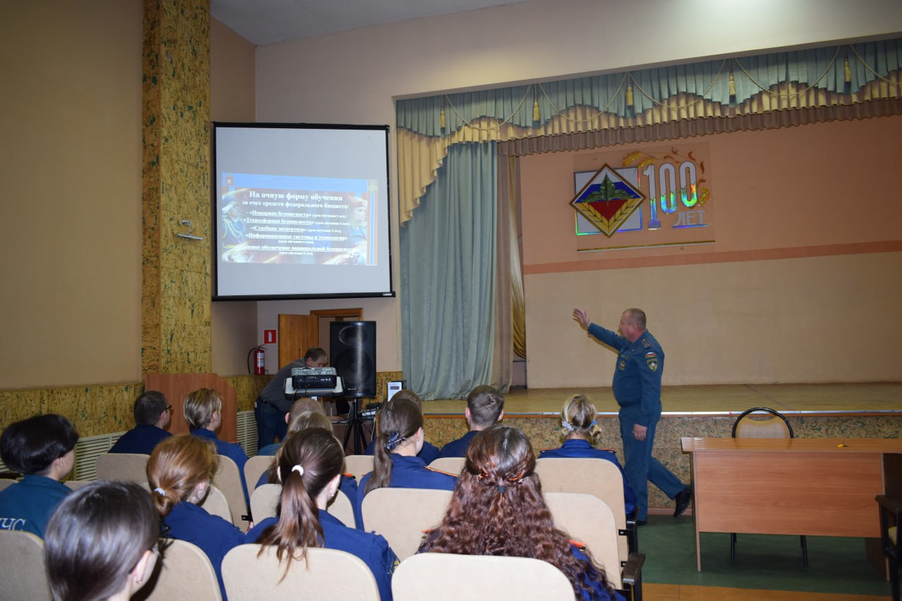 Также выпускники и старшекурсники узнали о социальных гарантиях, возможностях получить высшее образование в профильных вузах МЧС по целевым договорам, карьерной перспективе.
